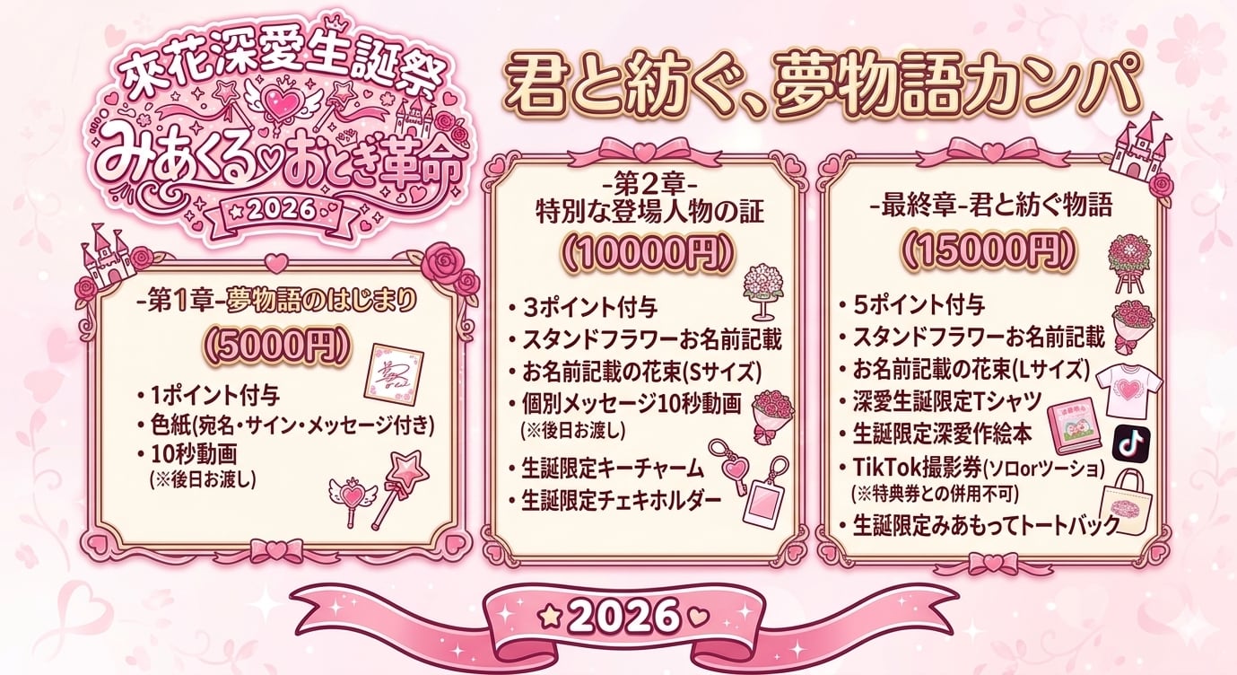 【來花深愛 生誕祭2026 〜君と紡ぐ、夢物語カンパ〜 -第2章-夢物語のはじまり】